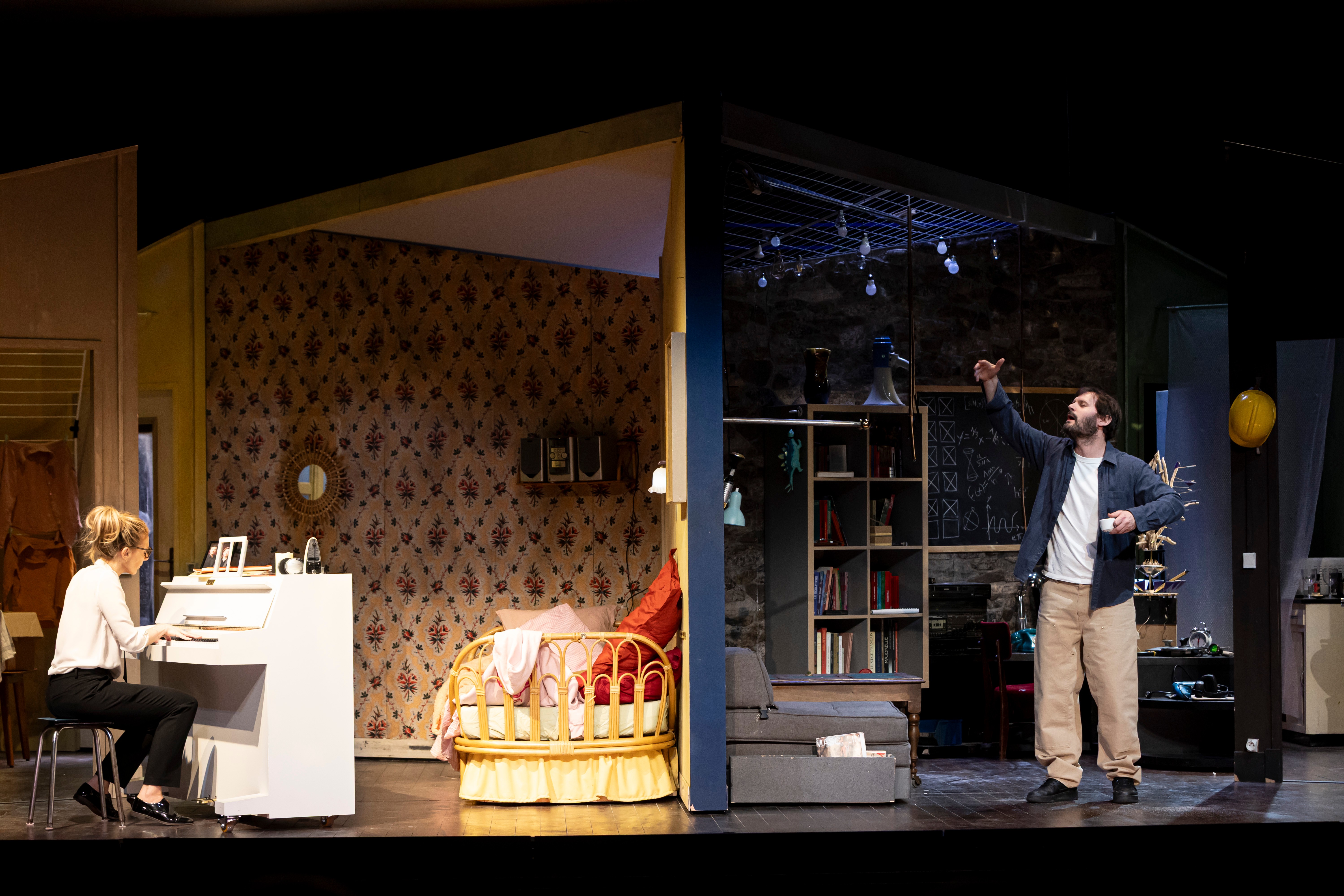 Pièce adaptée du film "Un peu, beaucoup, aveuglément", "Mur Mure" se passe (muraille) en huis clos ou presque, puisque deux lieux principaux sont mis à l'honneur, séparés par un mur peu épais. Séjour coquet avec lumière individuelle, (ré)chauffage collectif et bruit traversant garanti. Ne pouvant d'abord pas se supporter, nos héros, incarnés par le bougon mais délicieux Clovis Cornillac et Laurence Arné dans un rôle d'ingénue au grand cœur, ne vont avoir d'autre choix que d'apprendre à se connaî...